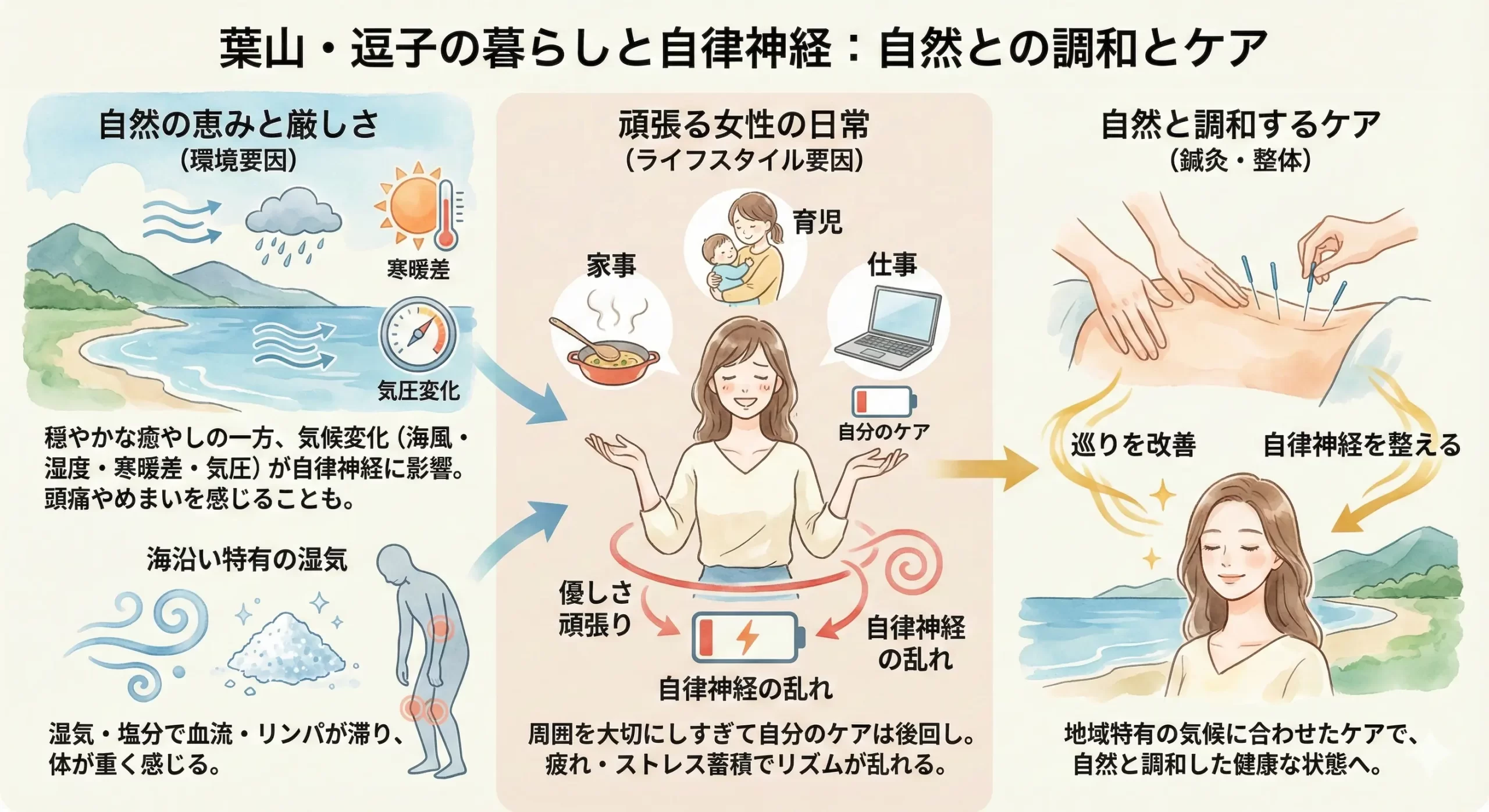 【葉山・逗子エリア】女性の自律神経の乱れを整える鍼灸アプローチ|心と体のバランスを取り戻す方法