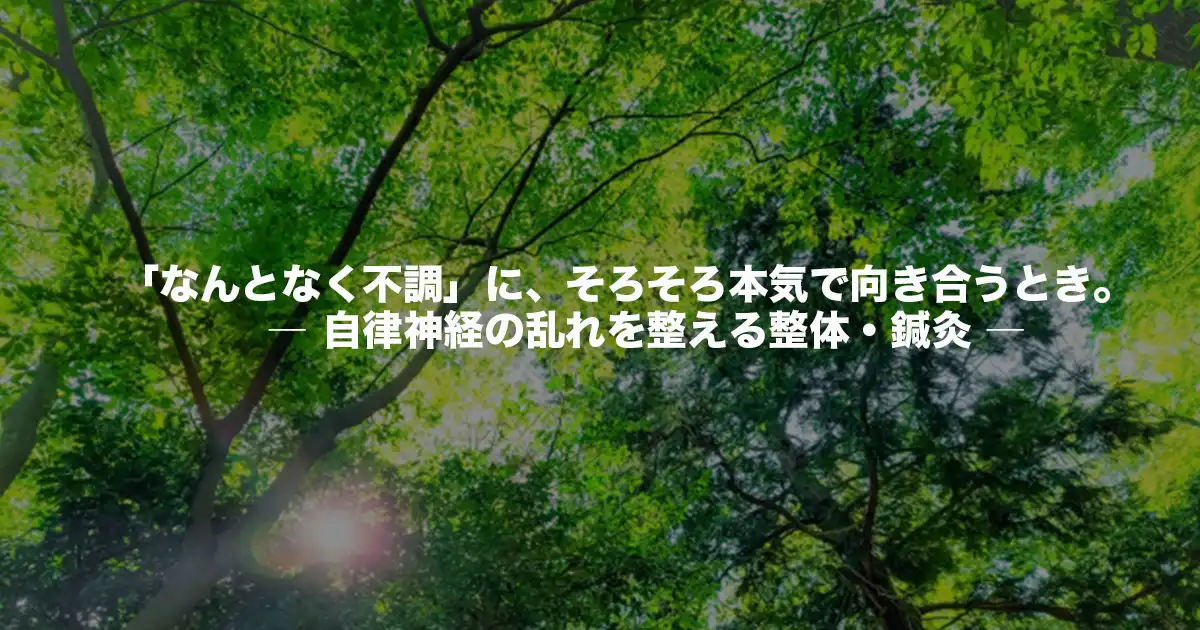 「病院では異常なし」と言われたあなたへ|鍼灸師が教える“自律神経の乱れ”が招く隠れ不調のサインとは? 公開日:2025年10月25日 ブログ 「なんとなく体がだるい」「眠っても疲れが取れない」「頭痛やめまいが続くのに、病院では“異常なし”と言われた…」。そんな経験はありませんか? 実は、これらの不調の多くは、検査では見えにくい自律神経の乱れが関係していることが […] 続きを読む